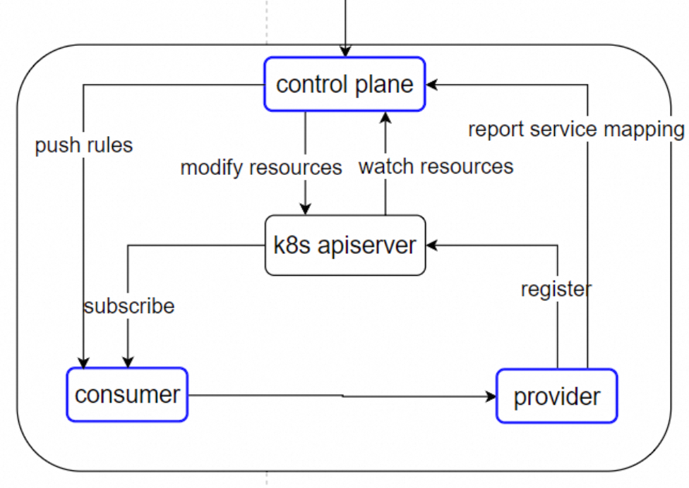 这种模式将 Dubbo Service 与 Kubernetes Service 概念映射起来,不再需要 Nacos 等传统注册中心,而是由 Kubernetes APISERVER 承担注册中心指责。